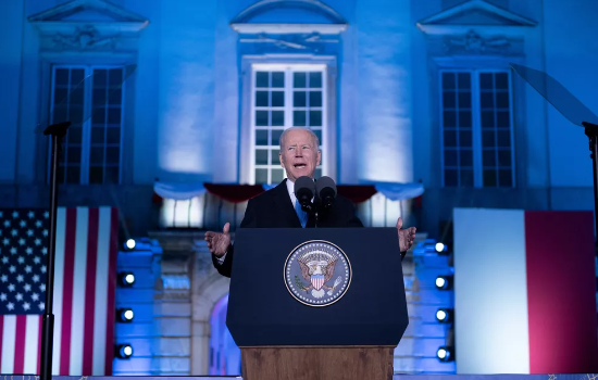 “A batalha pela democracia não foi de fato concluída com o fim da Guerra Fria”, disse Biden em seu discurso