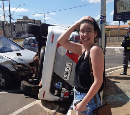 O que era para ser uma estreia com a carteira de habilitação terminou em um acidente inusitado que virou tema de memes. Uma jovem de 18 anos, que não teve a identidade revelada, capotou o carro ao bater em uma viatura da Polícia Militar em Franca (SP) após se atrapalhar com os pedais do veículo, segundo a PM.