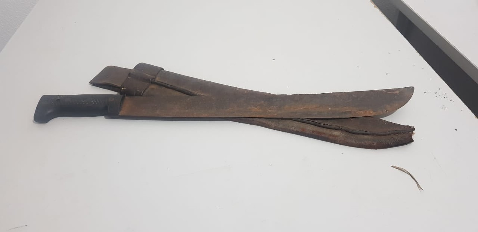 A polícia então foi local e prendeu o suspeito, que não reagiu e ainda informou onde estava o facão usado no crime. O facão estava escondido atrás de um sofá.
