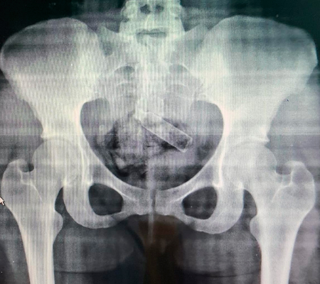 A jovem passou por um procedimento, onde foram retirados três pacotes de maconha pesando 50 gramas e um recipiente de perfume da sua genitália.