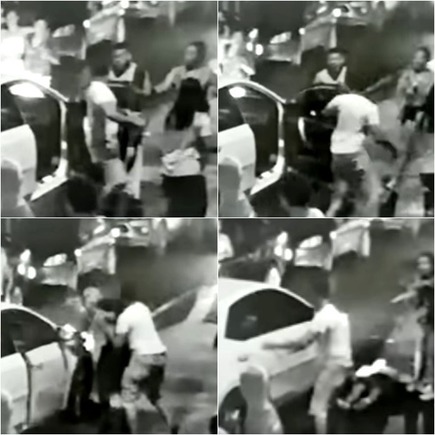 Nas imagens é possível ver o momento que um veículo para próximo a um grupo de foliões, um passageiro, conhecido como Rafael, desce e desferi um golpe com uma garrafa contra o rosto da vítima.