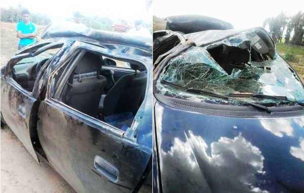 Um carro modelo Classic de placas NIH 0607 de Boqueirão do Piauí que era conduzido por um rapaz identificado como ?Peba?, filho do senhor Zé batata acabou descendo o aterro nas proximidades do Riacho dos Macacos com destino ao povoado Rua Dez. No local já houve vários outros registros de acidentes recentemente. O condutor do veiculo, felizmente, saiu apenas com ferimentos leves, mas o carro ficou bastante destruído.