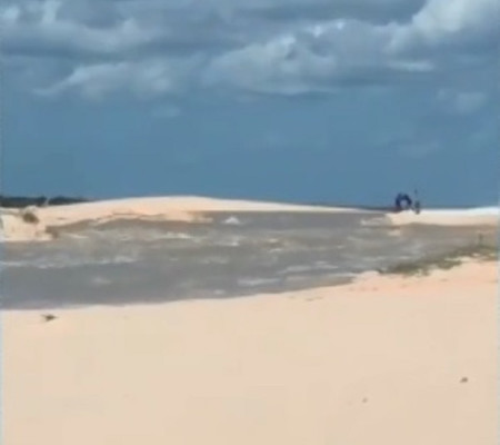 Lago Grande, um famoso ponto turístico de Camocim no litoral Oeste do Ceará, transbordou e invadiu uma grande área, deixando turistas que estavam no local ilhados. O fato aconteceu por volta de meio-dia de quarta-feira (26).