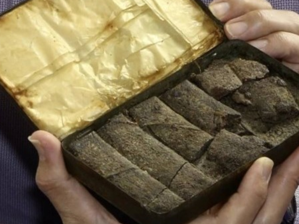 O recipiente, contendo várias barrinhas de chocolate bem antigas, foi achado em uma caixa abandonada no sótão de uma residência em Lincolnshire (Inglaterra). A raridade não foi para o lixo, pelo contrário ganhou destaque e rendeu.