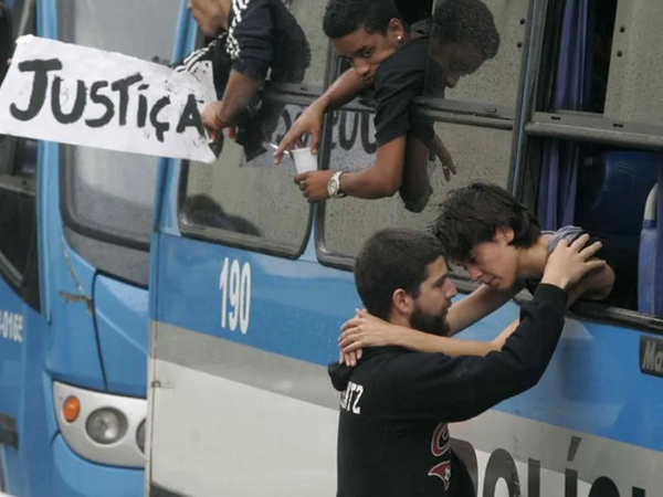 Os dois aparecem em uma foto que ficou conhecida na época em que Sininho foi presa e estava sendo levada dentro de um ônibus da Polícia Militar. Na foto, ela e Game Over trocavam um abraço.