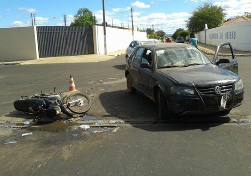 Heitiane Alencar, 18 anos, que seguia em uma moto Pop 100 com sua filha uma criança de um ano e oito meses, sentido centro ? Oeiras Nova, foram colhidas por um carro modelo Gol, conduzido por Antônio Cardoso da Silva, 89 anos, que invadiu a preferencial, atingindo mãe e filha. A condutora teve várias escoriações pelo corpo e a criança levou um forte pancada na cabeça.