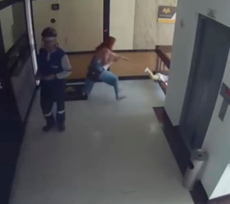 A mãe da criança, que não foi identificada, teve todo o seu susto e gravado pela câmera de segurança do local. No vídeo, ela e o filho saem do elevador e param em uma porta para aguardar.