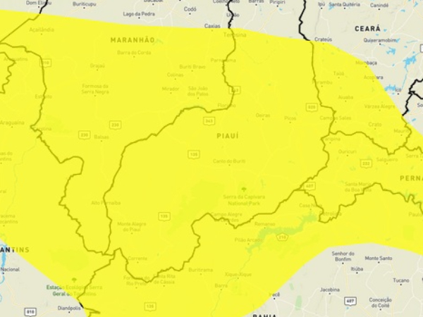 O alerta de temporais engloba 183 municípios do Piauí tais como Teresina, Picos e Uruçuí.