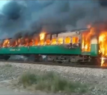 "Dois fogões explodiram quando as pessoas estavam tomando café da manhã, [e] a presença de querosene com os passageiros no trem em movimento espalhou ainda mais o fogo", disse o ministro das Ferrovias Sheikh Rashid Ahmed à rede de televisão Geo.