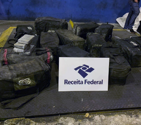 Um carregamento de 720 kg de cocaína foi interceptado pela Receita Federal no Porto de Santos, no litoral de São Paulo, nesta segunda-feira (19). A droga tinha como destino o porto de Roterdã, na Holanda. A Polícia Federal abriu investigação para identificar os envolvidos na ação. As informações são do G1.