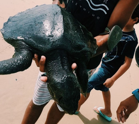 Na segunda (23), uma tartaruga da espécie oliva foi encontrada morta e coberta por óleo na praia de Redinha, em Extremoz. O animal apresentava a substância no casco e na mucosa da cavidade oral. Profissionais do Aquário de Natal recolheram a tartaruga e iniciaram o tratamento.