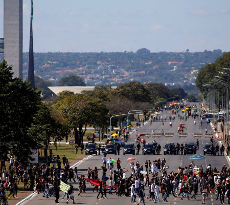 Esse grupo ficou na Esplanada por pouco tempo. Às 11h, ele já caminhava de volta, se afastando do Congresso Nacional em direção à Biblioteca Nacional, onde começou a dispersão. O protesto foi pacífico.