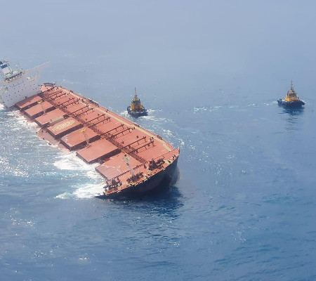 A empresa VLOC, proprietária do navio, informou que todos os porões de carga estão intactos e a situação está sob controle. A empresa afirmou ainda que todas as autoridades foram acionadas de acordo com os procedimentos padrão.