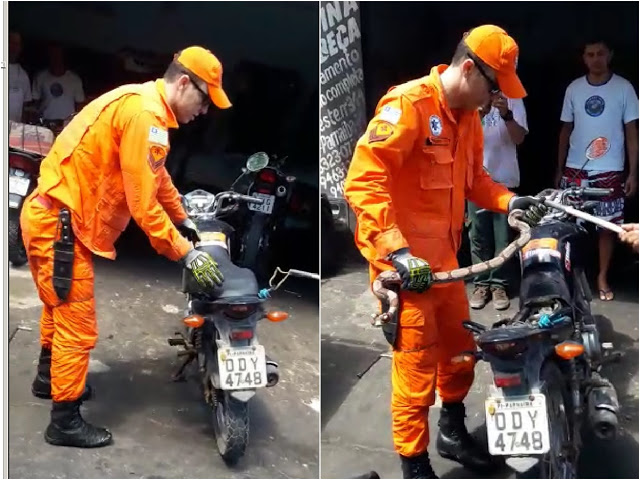 O Corpo de Bombeiros foi acionado para fazer a remoção do animal e devolvê-la a seu habitat natural. O proprietário da motocicleta que não desconfiava da companhia que tinha durante suas viagens, pode ter em fim encontrado o problema que sua motocicleta.