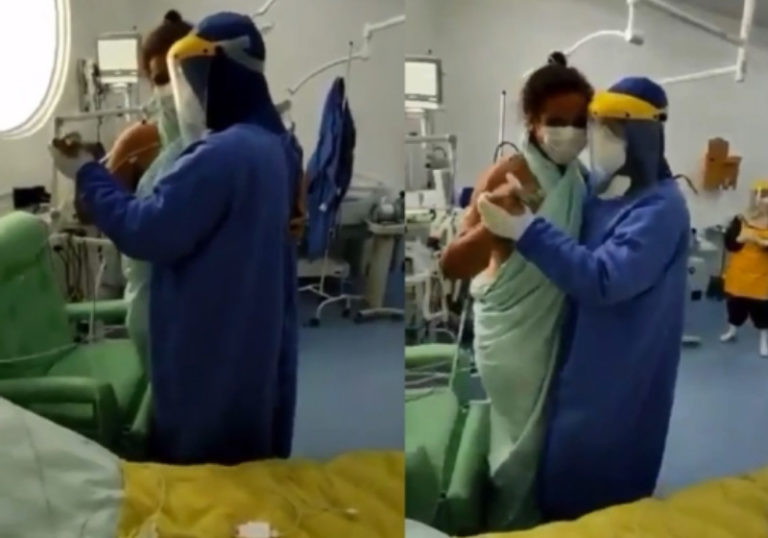 Foi ao som de Asa Branca, de Luiz Gonzaga, que o médico Pedro Diniz comemorou dançando com a paciente, a evolução do tratamento dela contra a covid 19.