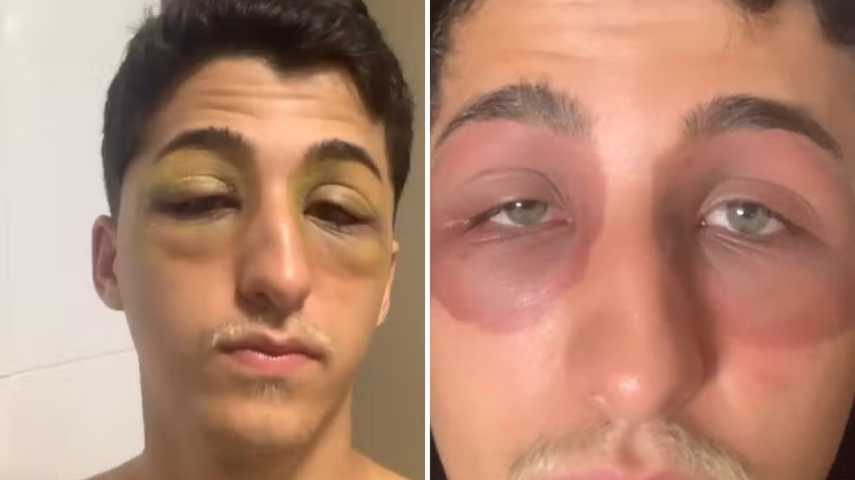 O jovem contou que foi dormir normalmente na madrugada de terça-feira (6) e acordou assustado ao se deparar com a aparência inusitada: havia inchaço, coloração amarelada em seus olhos, acompanhados de irritação e constante lacrimejamento. No dia seguinte, a região apresentava um aspecto de hematoma. Apesar de não sentir dor, ele notou que a pele ao redor dos olhos estava endurecida e sentiu desconforto em ambientes claros.