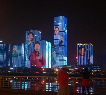 Cerca de 50.000 telas digitais iluminavam as fachadas dos edifícios mais emblemáticos de quase vinte cidades com o rosto desses profissionais de saúde.