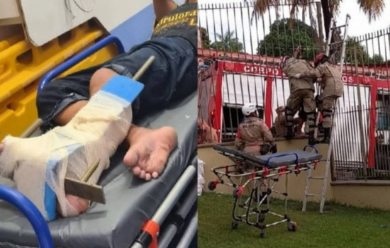 Um menino de 12 anos teve uma lança de ferro atravessada no pé ao tentar pular a grade de uma igreja em Manaus. O caso ocorreu no último sábado.