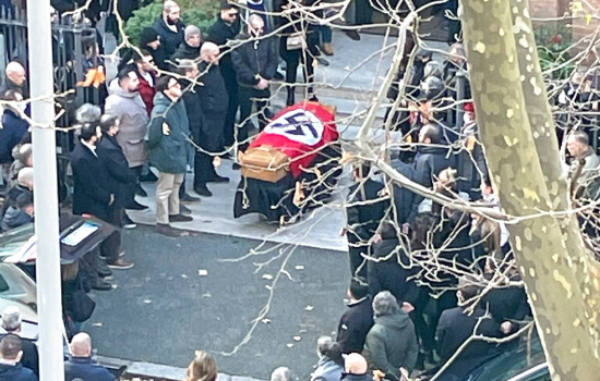 Líderes católicos e judeus italianos condenaram nesta terça-feira (11) um episódio em que extremistas de direita colocaram uma bandeira com uma suástica sobre um caixão do lado de fora de uma igreja após um funeral religioso e fizeram saudações nazistas.