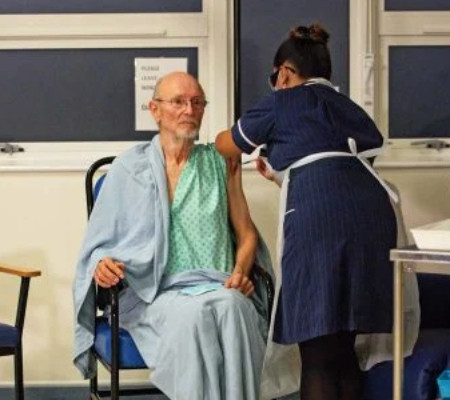Shakespeare foi inoculado com o fármaco da Pfizer em dezembro no Hospital Universitário de Coventry, minutos depois de Margaret Keenan, de 91 anos, a primeira pessoa no mundo a receber a vacina.