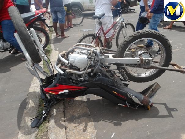Uma colisão entre motos na quinta-feira, 21, deixou uma mulher ferida em Oeiras. A colisão aconteceu no cruzamento da avenida Totonho Freitas com rua Professor Rafael Farias, próximo a Igreja Batista, e deixou ferida a mulher identificada por Rosa Alcorforado, que era proprietária de um conhecido bar no bairro Rodagem de Floriano.