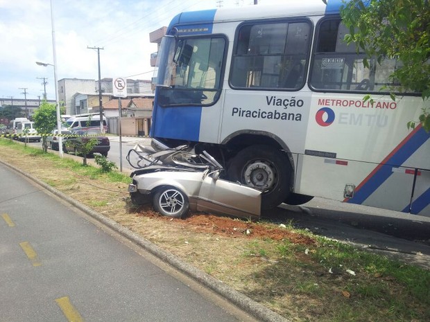 Um carro ficou completamente destruído após ser esmagado por um ônibus em um cruzamento no bairro Ponta da Praia, em Santos, no litoral de São Paulo. Depois da colisão, o condutor do ônibus perdeu o controle do veículo e atingiu outros quatro carros que estavam estacionados. O acidente ocorreu durante a tarde deste domingo (12). Ninguém ficou gravemente ferido.