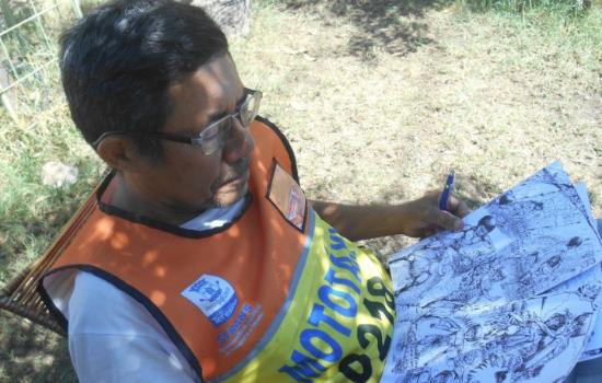 Quem visita a praça do bairro Esplanada, em Teresina, no Piauí, se depara muitas vezes com um mototaxista sentado com uma pasta apoiada em suas pernas. Enquanto aguarda a chamada dos seus passageiros, o profissional segura, em sua mão, uma caneta para desenho que logo se movimenta no papel da prancheta e, assim, cria universos e histórias em quadrinhos.