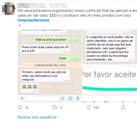 “O assédio sofrido nas escolas é uma triste realidade que precisa ser tratada de maneira dura, pois é crime. As mulheres que utilizaram o #ExposedTeresina para denunciar são corajosas. A OAB está atenta aos relatos de práticas de assédio sofrido por essas mulheres e, por isso, disponibilizamos o canal da Ouvidoria para receber as denúncias com toda a segurança, iremos tomar os encaminhamentos necessários”, frisou.