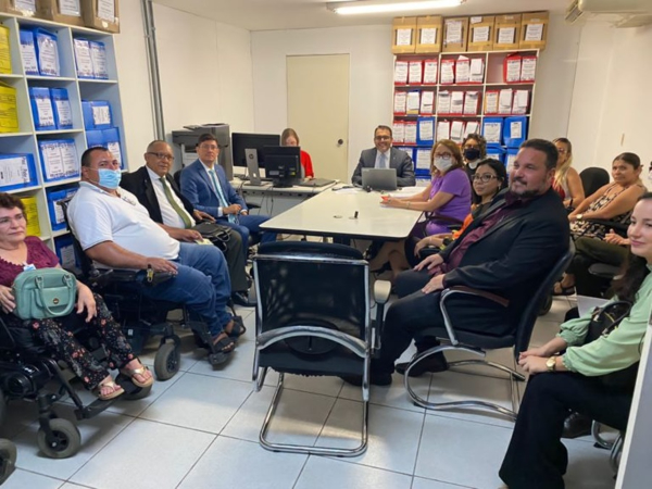 A promotora de Justiça Marlúcia Evaristo, titular da 28ª Promotoria de Justiça de Teresina, participou de audiência de conciliação na 1ª Vara dos Feitos da Fazenda Pública de Teresina, sobre o serviço de transporte para pessoas com deficiência no âmbito da capital. A audiência foi presidida pelo juiz Thiago Carvalho Martins.