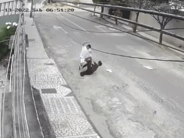 O homem tentou levar a bolsa, mas a mulher não soltou o acessório e foi arrastada enquanto levava os golpes de faca na região do braço. Mesmo ferida, ela se levantou e saiu andando, enquanto o agressor saiu correndo em fuga sem conseguir levar nada.