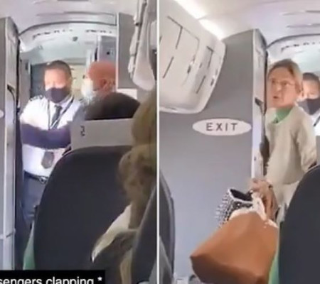 Quando a mulher recolheu seus pertences do bagageiro, é possível ver que ela está com raiva e respondeu: "Vocês podem bater palmas quantas vezes quiserem".