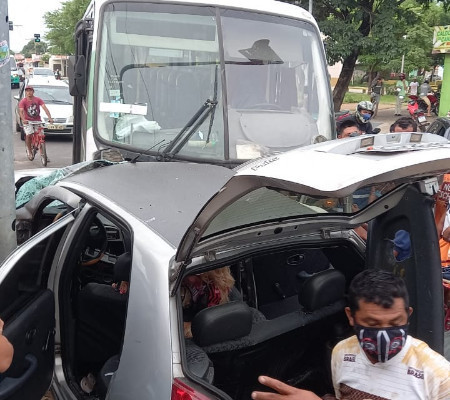 Na manhã desta sexta-feira, 09 de abril, um grave acidente foi registrado próximo a praça do bairro Poti Velho, na zona Norte de Teresina, envolvendo um microônibus e um veículo de passeio.