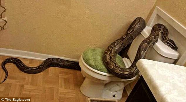 Uma moradora do Texas levou enorme susto quando entrou no banheiro de sua casa em College Station. Ela se deparou com uma cobra de mais de 3,5 metros enrolada em seu vaso sanitário.