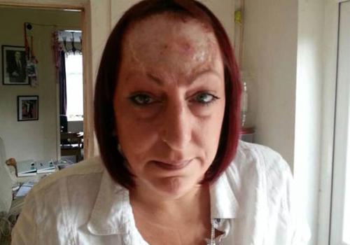 Uma mulher teve toda a sua testa removida para conseguir vencer uma forma extremamente rara de câncer. Ela precisou implantar uma testa artificial após ter 85% da pele removida por cirurgiões.