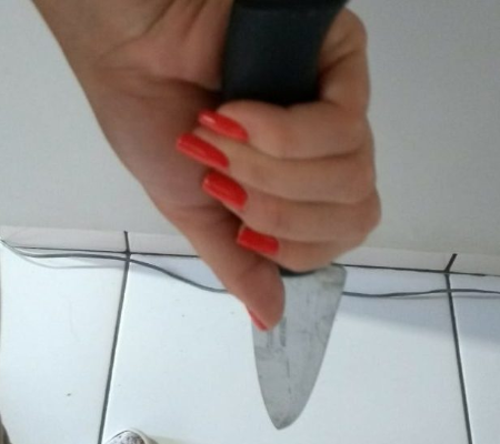 Com a confusão, a Polícia Militar foi acionada e chegou a tempo de conter a esposa que ameaçava o marido com uma faca na mão. De acordo com Boletim de Ocorrência (B.O), tudo começou quando a esposa chegou em casa e flagrou o companheiro transando com a “amiga”.