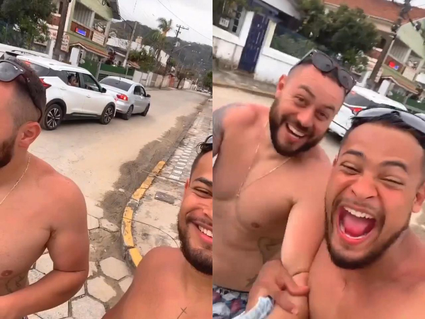 Um veículo ocupado somente por mulheres bateu em outro carro no momento que elas se distraíram elogiando os dois amigos. A cena foi filmada por Guilherme e publicada nas redes sociais. O vídeo já soma mais de 1,6 milhão de visualizações no Tik Tok e Instagram.