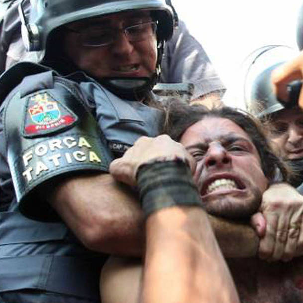Manifestante é detido pela polícia durante um protesto | Foto: Reprodução
