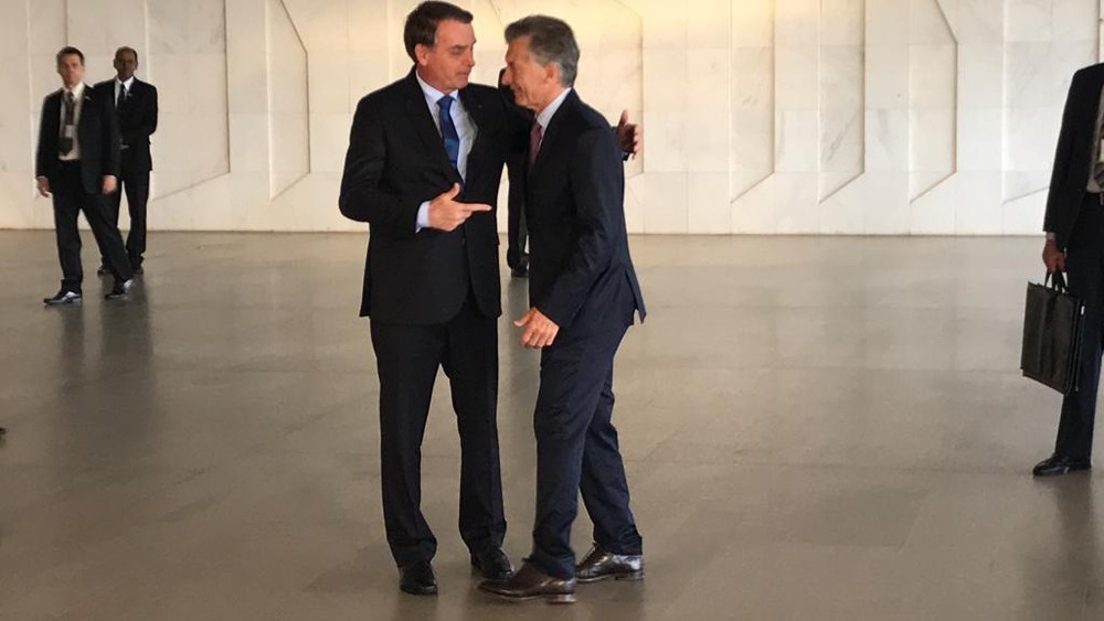 Após uma audiência privada, Bolsonaro e Macri fizeram um pronunciamento conjunto em um dos salões do Palácio do Planalto. Ao falar, Macri disse que Brasil e Argentina compartilham uma preocupação com a crise política e econômica da Venezuela.