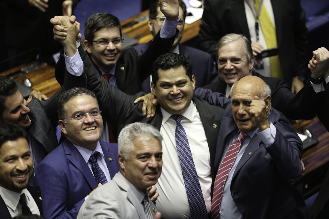 Diante do protesto de senadores, a votação teve que ser refeita. Alcolumbre foi eleito com 42 votos.