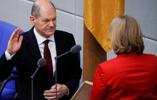 "Sim", respondeu Scholz a Bärbel Bas, a presidente do Bundestag, que lhe perguntou se aceitava o resultado da votação. O presidente da República Federal, Frank-Walter Steinmeier, entregou-lhe então o "ato de nomeação", marcando assim o início oficial do mandato de quatro anos.