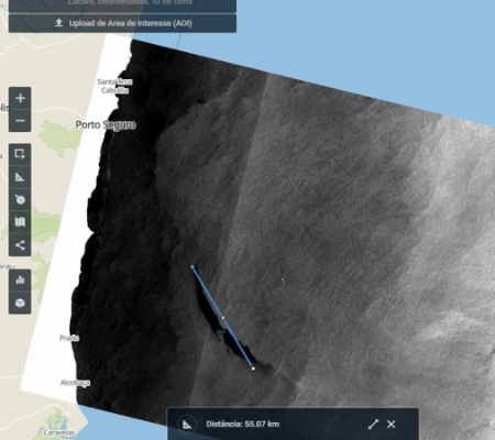 Após três semanas de processamento de imagens do satélite europeu Sentinel-1A, o pesquisador Humberto Barbosa, do Lapis, identificou o enorme vazamento de óleo, ao sul da Bahia, nas proximidades dos municípios de Itamaraju e Prado.