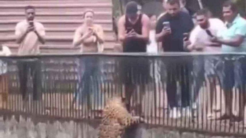 Em uma das imagens, a onça estende as patas para fora da grade de proteção, levando uma mãe a afastar uma criança do local. Fontes anônimas mencionam que os animais no zoológico estão ansiosos, alegando que a alimentação tem sido limitada.