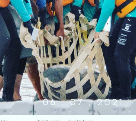 Ela é um dos animais reabilitados pela ONG Aquasis, que atua no Ceará, e foi solta no mar no último dia 6 de julho, depois de seis anos de reabilitação e aclimatação. Segundo a ONG, o animal foi resgatado ainda filhote na praia de Melancias, em Icapuí (CE).