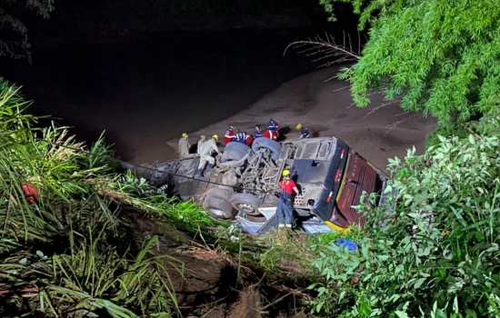Um ônibus caiu em uma ribanceira na BR-153 e deixou cinco mortes e dezenas de feridos na madrugada desta sexta-feira (24), em Aparecida de Goiânia, Região Metropolitana da capital. O acidente aconteceu no desvio próximo à cratera que se abriu na rodovia.
