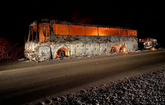 Os policiais verificaram que os veículos incendiaram, possivelmente, por problemas mecânicos que se iniciaram no ônibus.