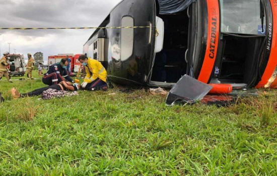 Um ônibus de turismo da empresa Catedral que saiu do Piauí, tombou no final da manhã deste domingo, 31 de outubro, no momento em que fazia uma curva na BR-020, próximo ao Sobradinho, sentido Plano Piloto, no Distrito Federal.