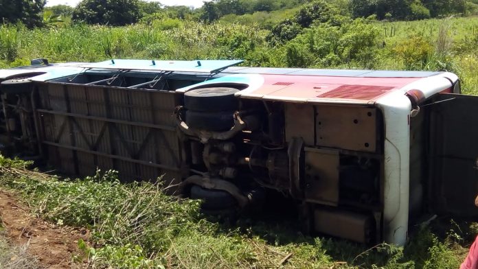 Um ônibus da empresa Princesa do Sul, que saiu da cidade de Avelino Lopes com destino a Teresina neste sábado (26), tombou por volta das 22h, após bater em duas vacas na PI-140 a cerca de 10 quilômetros depois da cidade de Canto do Buriti sentido a Itaueira.