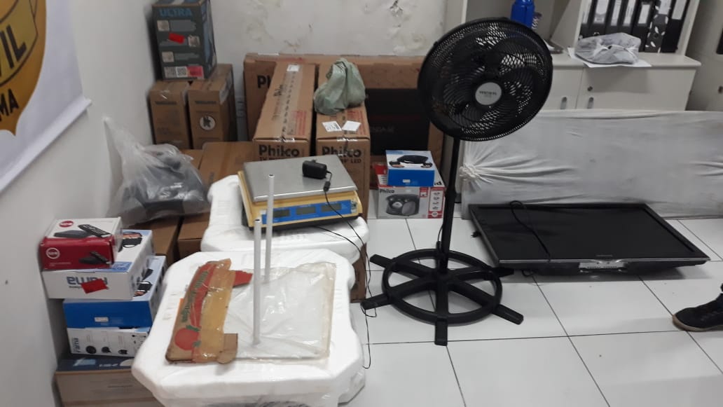 Os policiais conseguiram chegar até a casa do suspeito, que fica no Beco 21, no bairro Parque Alvorada, em Timon (MA), onde foram encontrados diversos produtos roubados como TVs LCD, ventiladores e ar-condicionado, mas ele não se encontrava no endereço.
