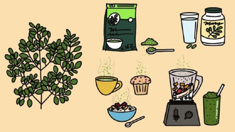 As folhas podem ser moídas e transformadas em pó para serem usadas em vitaminas, sopas, molhos e chás.