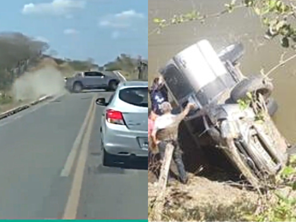 Um motorista que trafegava pela via flagrou o momento em que o condutor, que transitava pela contramão, parece colidir no meio-fio e perder o controle do automóvel. Em seguida, o carro atravessa a rodovia e capota, caindo na barragem à margem da pista.